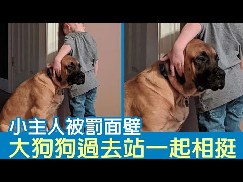 小主人被罰面壁 大狗狗過去站一起相挺 | 狗狗搞笑